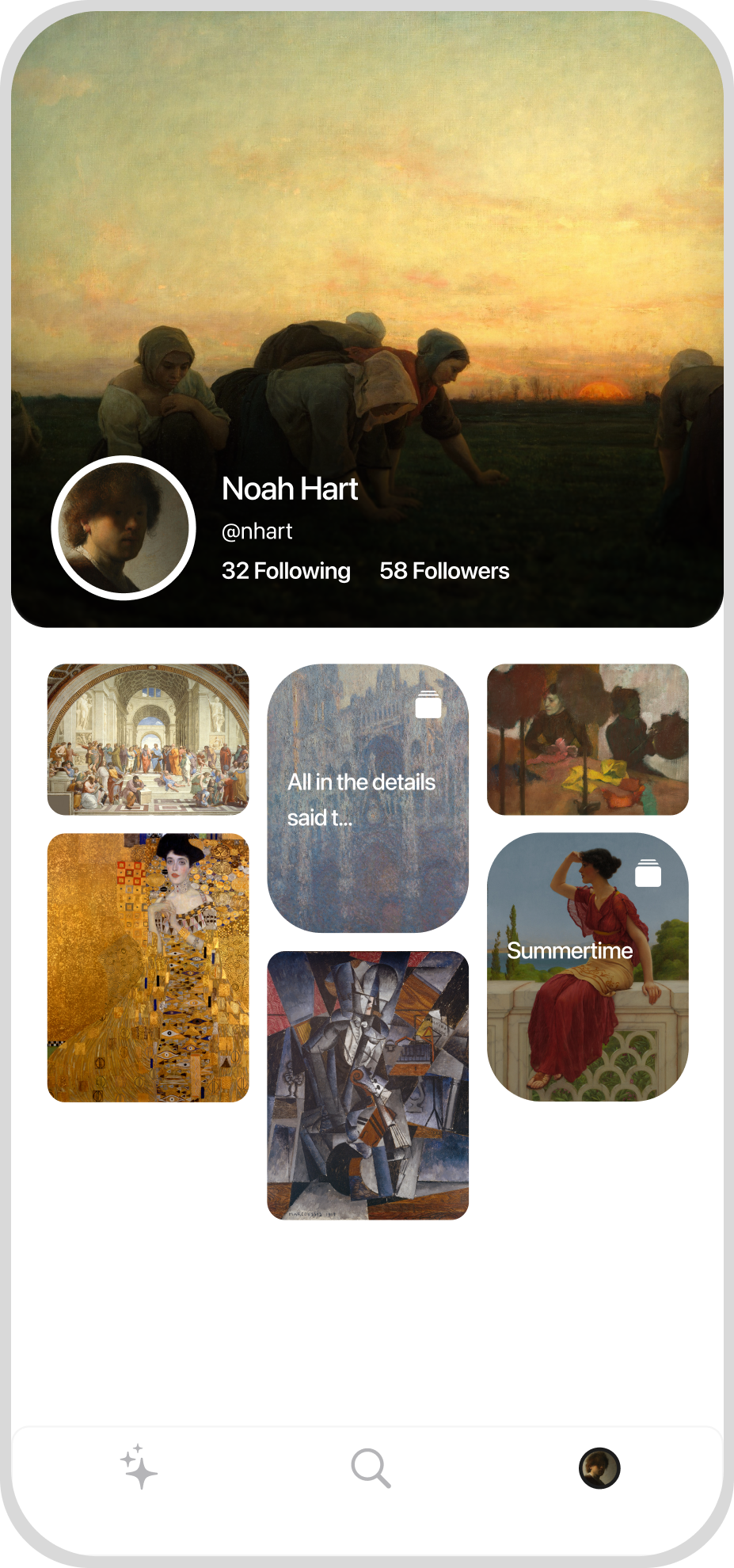 Art with friends Share your taste. Discover what others love. Art is better shared. Daily curated artworks Your favorites, in one place See what friends are loving If it speaks to you, it matters.Collect what moves you, reflect at your own pace, and share with people who get it. No noise. Just art that feels personal, and friends that make it meaningful.